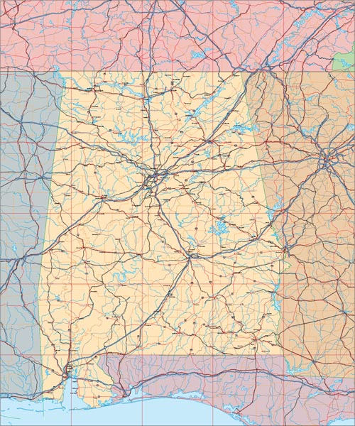 Detail view of EPS Vector Map of Alabama - the land fill color is switched on.