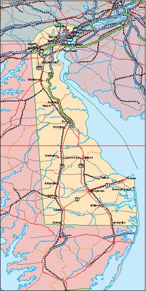 Detail view of EPS Vector Map of Delaware - the land fill color is switched on.