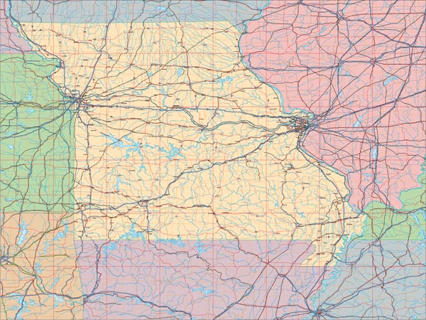Detail view of EPS Vector Map of Missouri - the land fill color is switched on.