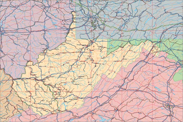 The EPS Vector map for West Virginia has 26 layers which may be individually modified or removed.
