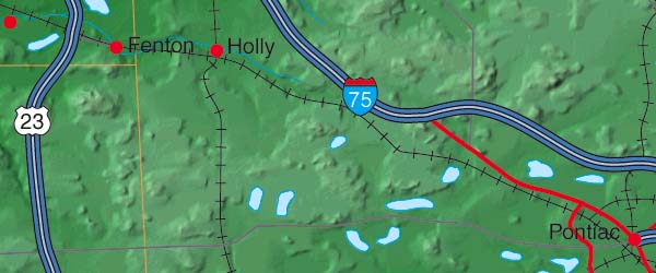 Detail view of EPS Vector Map of Michigan - the land fill color is switched on.