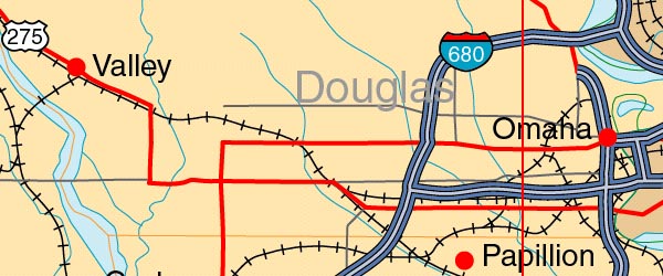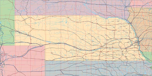 The EPS Vector map for Nebraska has 26 layers which may be individually modified or removed.