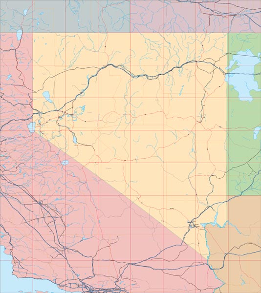 Detail view of EPS Vector Map of Nevada - the land fill color is switched on.