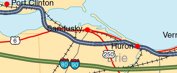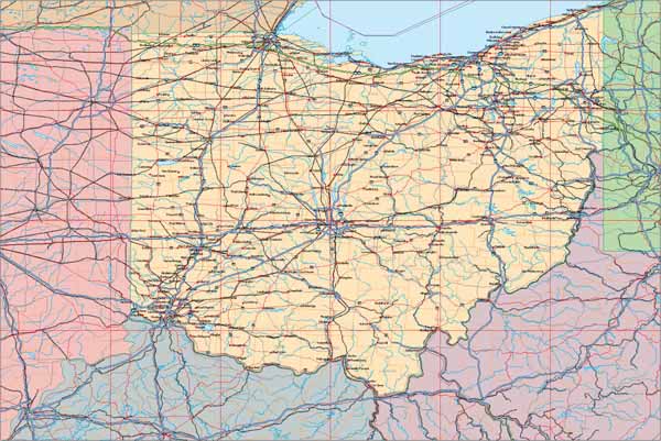 Detail view of EPS Vector Map of Ohio - the land fill color is switched on.
